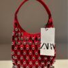 Bolsa de mão vermelha com esferas de metal Zara